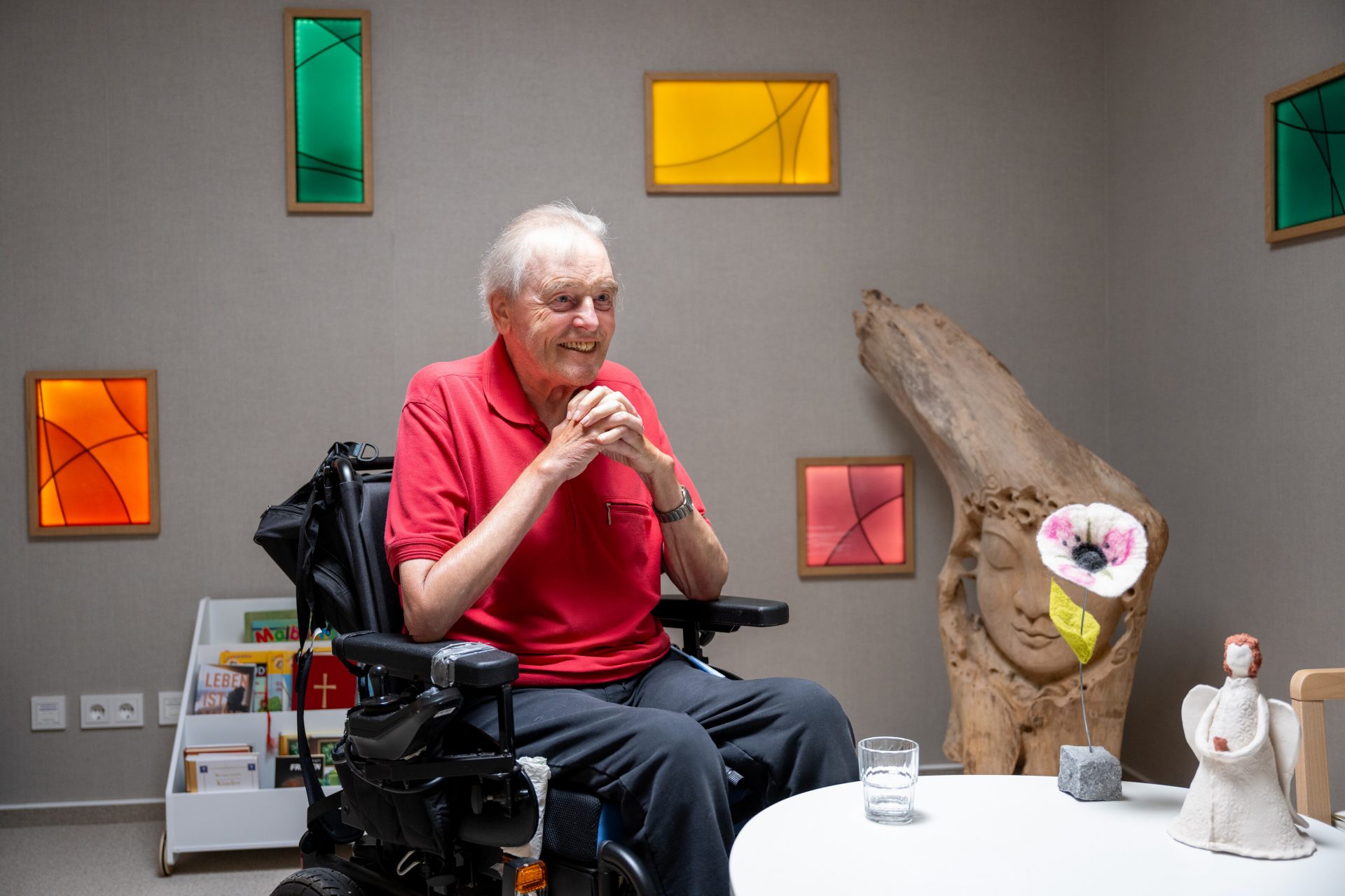 Reden – das ist Eckhard Vinke wichtig, wenn es menschlich passt. Von den Mitarbeitenden im Hospiz ist er begeistert: „Die sind alle mit dem Herzen dabei und gut ausgebildet.“ Über sich selbst wundert er sich. „Ich habe mich immer so viel mit dem Tod auseinandergesetzt. Oft habe ich gedacht: Bevor mir das passiert, möchte ich lieber sterben!“ Doch dann, als er auf der Intensivstation in Bethel die Nähe des Todes erfuhr, veränderte sich alles. „Jetzt ist da ständig diese Lebensfreude“, sagt er. Seine Augen strahlen in dem von der Krankheit gezeichneten Gesicht.