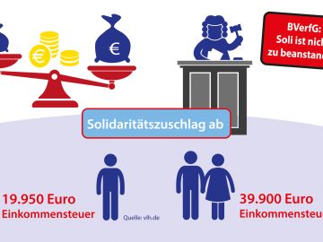 WeiterlesenSeit 2021 zahlen, abgesehen von Körperschaften und Kapitalanlegern, nur noch Besserverdienende den Solidaritätszuschlag. Daran wird sich vorerst auch nichts ändern: Das Bundesverfassungsgericht (BVerfG) hat entschieden, dass keine Zweifel an der […]