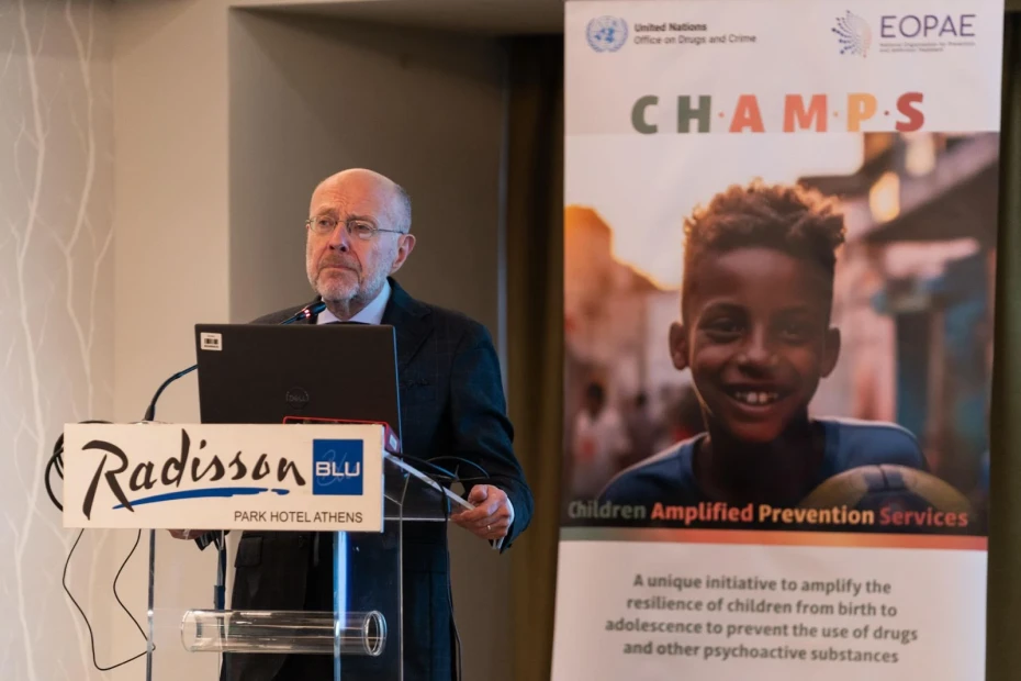 Με επιτυχία ξεκίνησε στην Ελλάδα το διεθνές πρόγραμμα CHAMPS (Children Amplified Prevention Services) του ΟΗΕ, υπό την αιγίδα του Υπουργείου Υγείας και του Γραφείου των Ηνωμένων Εθνών για τα Ναρκωτικά και το Έγκλημα (UNODC), με συντονιστή φορέα τον Εθνικό Οργανισμό Πρόληψης και Αντιμετώπισης Εξαρτήσεων (ΕΟΠΑΕ). Πρόκειται για μια καινοτόμο διεθνή πρωτοβουλία συστημικών παρεμβάσεων πρόληψης, που στοχεύει στην ενίσχυση των επιστημονικά τεκμηριωμένων παρεμβάσεων για παιδιά και εφήβους, από τη γέννηση έως και την ενηλικίωση, μέσα από ολιστική προσέγγιση, διατομεακή συνεργασία και ανταλλαγή επιστημονικών γνώσεων και καλών πρακτικών μεταξύ των κρατών μελών.