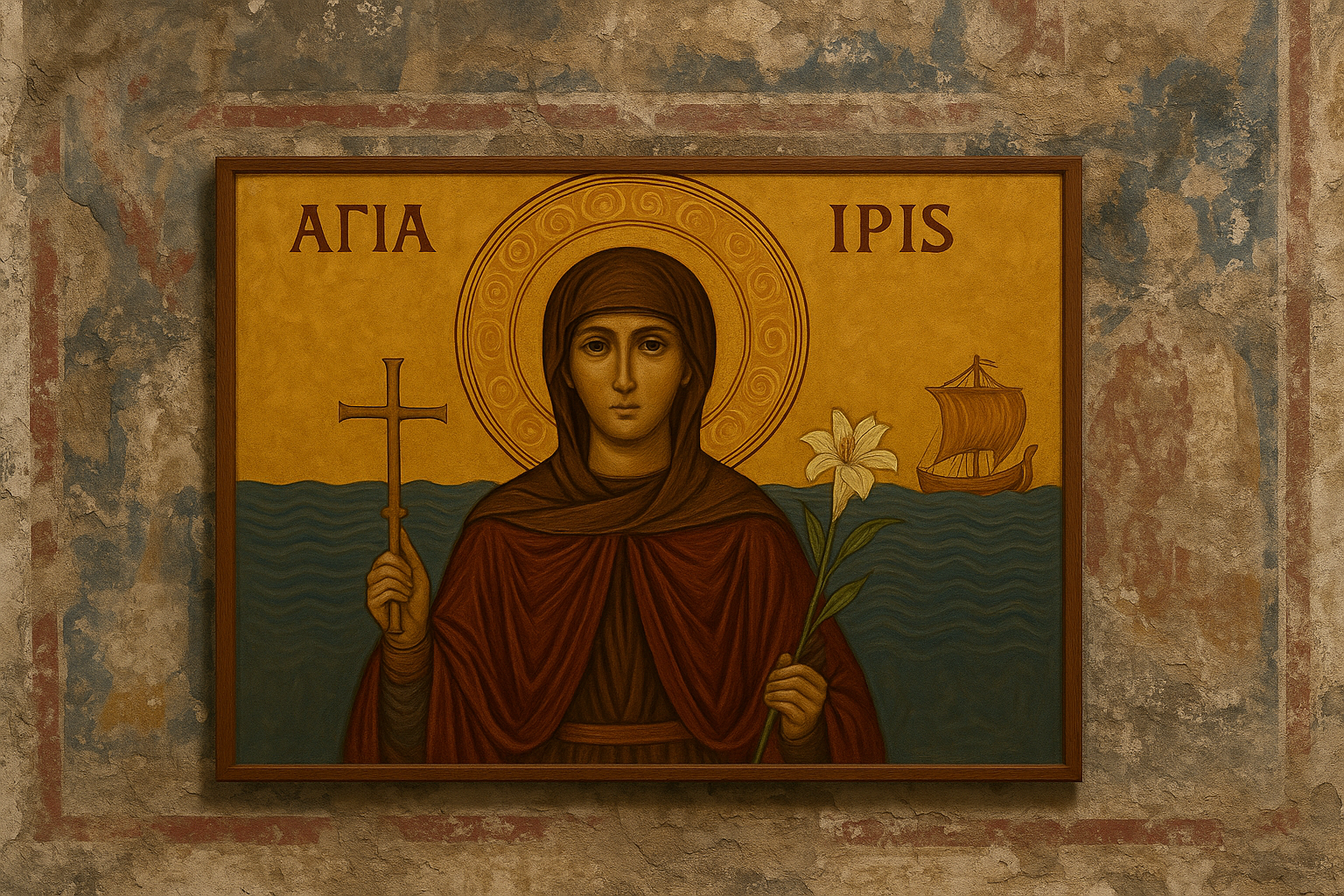Die griechisch-orthodoxe Kirche ehrt die Heilige Iris – auch als Agia Rais, Agia Iris oder Iraida bekannt – nicht nur wegen ihres gewaltsamen Todes, sondern wegen der Geisteshaltung, die sie lebte: selbstlose Liebe, Mut und Hingabe an den Glauben. Ihr Gedenktag, der 23. September, wird nicht nur als liturgisches Fest begangen, sondern auch als Namenstag für alle, die den Namen Iris tragen – ein Name, der sinnbildlich für den Regenbogen steht und in der antiken Mythologie mit der Botin zwischen Himmel und Erde assoziiert wird. So schlägt der Name eine Brücke zwischen der antiken Welt und der christlichen Neuzeit – zwischen Mythos und Martyrium, zwischen Farbe und Blut, zwischen Hoffnung und Opfer.