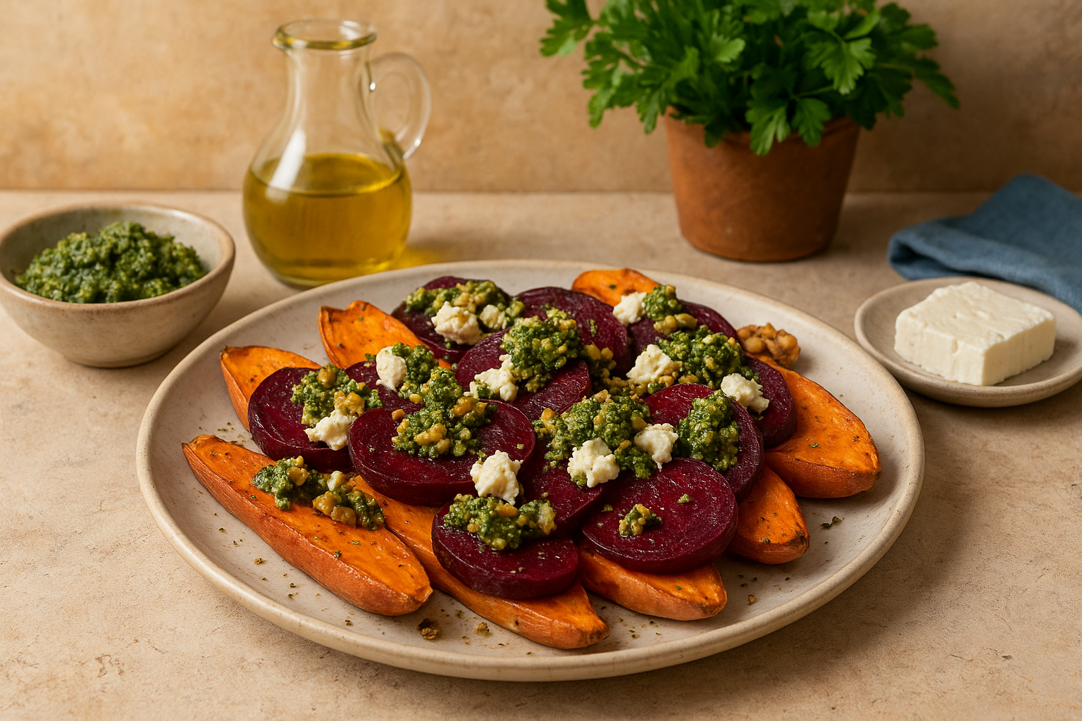Ελληνική Κουζίνα: Γλυκοπατάτα & Παντζάρι με Πέστο Καρυδιού