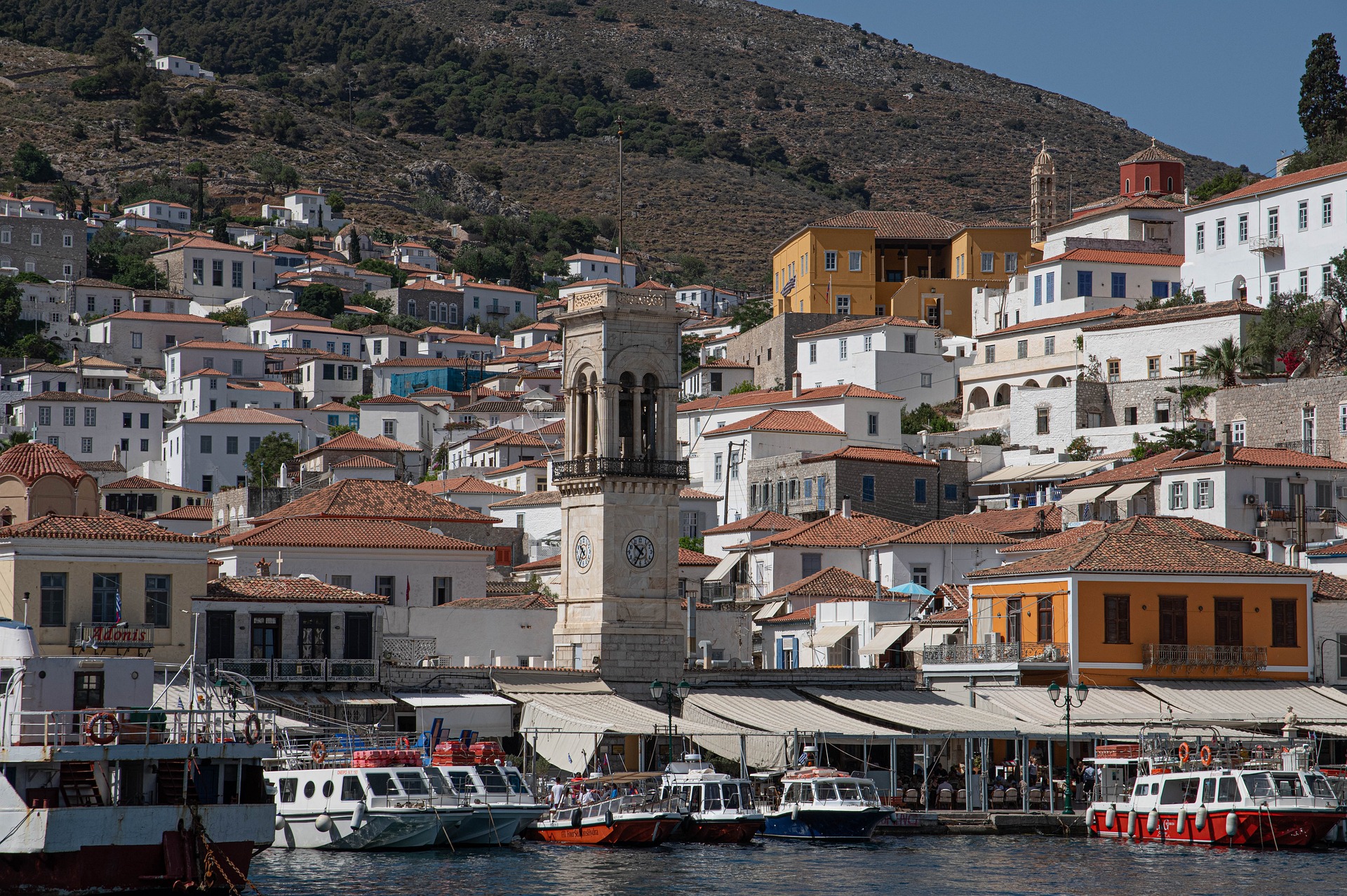 Reisen/Hydra – Hydra liegt etwa 70 Kilometer südlich von Athen und ist Teil der Saronischen Inselgruppe. Die Insel erstreckt sich über eine Fläche von ca. 50 Quadratkilometern und ist bekannt für ihre schroffe Küste, die aus schmalen Buchten und felsigen Klippen besteht. Die Landschaft ist von Bergen dominiert, wobei der höchste Punkt, der Mount Eros, eine Höhe von 593 Metern erreicht. Hydra ist fast vollständig autofrei, was zur Erhaltung ihrer natürlichen und architektonischen Schönheit beiträgt. Stattdessen prägen Esel und Boote das Verkehrsbild.