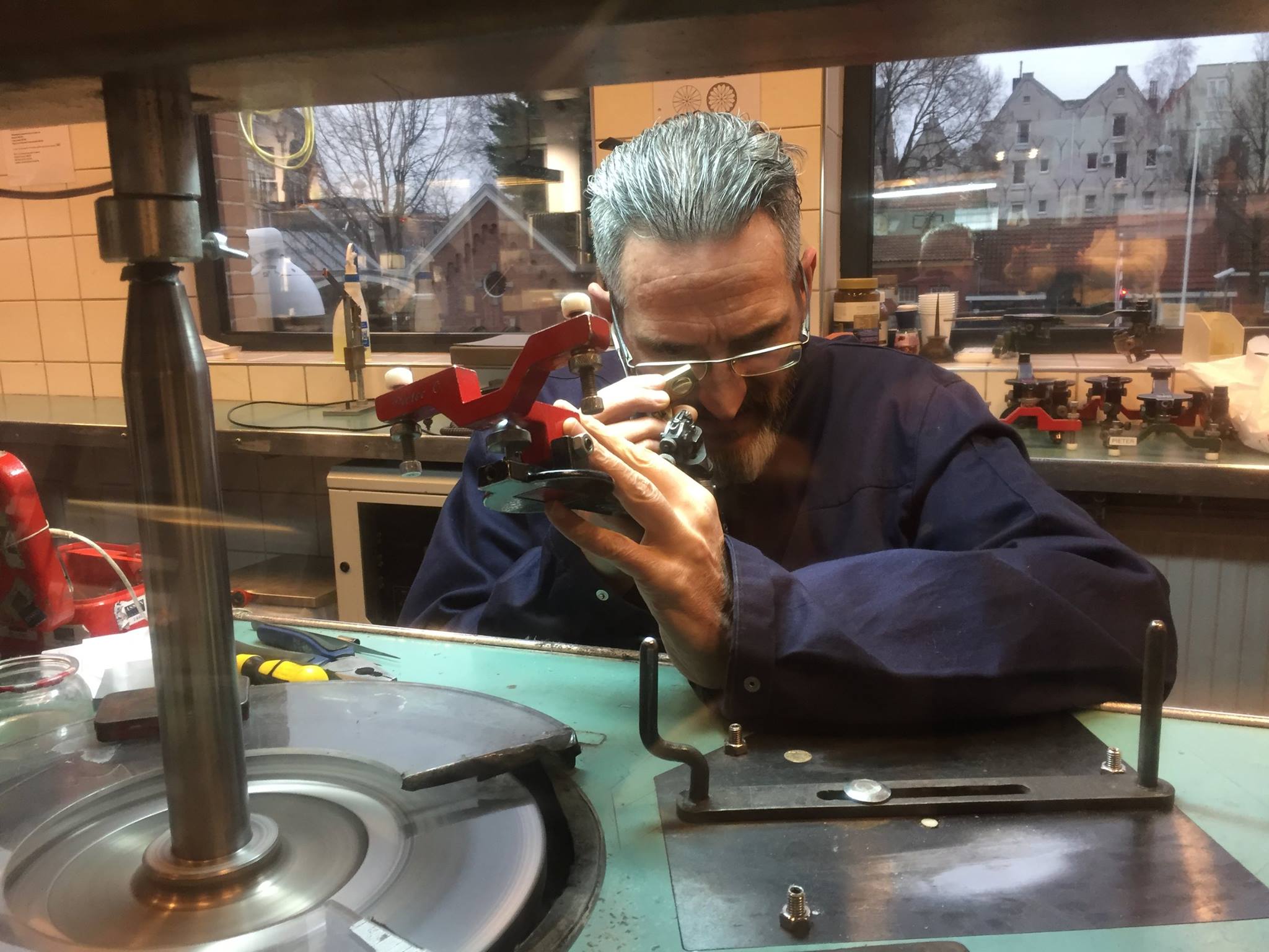 Gegründet wurde Gassan Diamonds im Oktober 1945 von Samuel Gassan, nur wenige Monate nach dem Ende des Zweiten Weltkriegs. In einer Zeit, in der Europa noch mit den Folgen der Zerstörung rang, entschied sich Gassan für den Neuanfang – und für die Rückkehr zu seinem Handwerk. Er hatte seine Ausbildung zum Diamantschleifer in Amsterdam absolviert und kehrte genau dorthin zurück, wo alles begonnen hatte: in die ehemalige Diamantschleiferei der Gebrüder Boas in der Nieuwe Uilenburgerstraat. Dieser Ort war mehr als ein praktischer Startpunkt. Er symbolisierte Kontinuität in einer Stadt, deren Diamantenindustrie durch Krieg und Verfolgung nahezu ausgelöscht worden war.