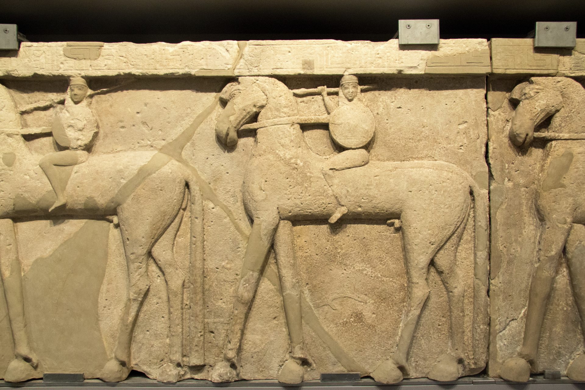 Von herausragender Bedeutung sind die Überreste archaischer Tempel, darunter der sogenannte Tempel A, der vermutlich der Titanin Rhea geweiht war – jener Urmutter der Götter, die in der kretischen Mythologie eine zentrale Rolle spielt. Reliefs, die hier gefunden wurden, zeigen Szenen von Reitern, Hirschen, Panthern und geheimnisvollen, thronenden Gottheiten. Diese Meisterwerke der archaischen Bildkunst sind heute im Archäologischen Museum von Iraklion zu bewundern und bilden eine der faszinierendsten Brücken zwischen der kretischen Frühgeschichte und der Kunst der griechischen Antike.