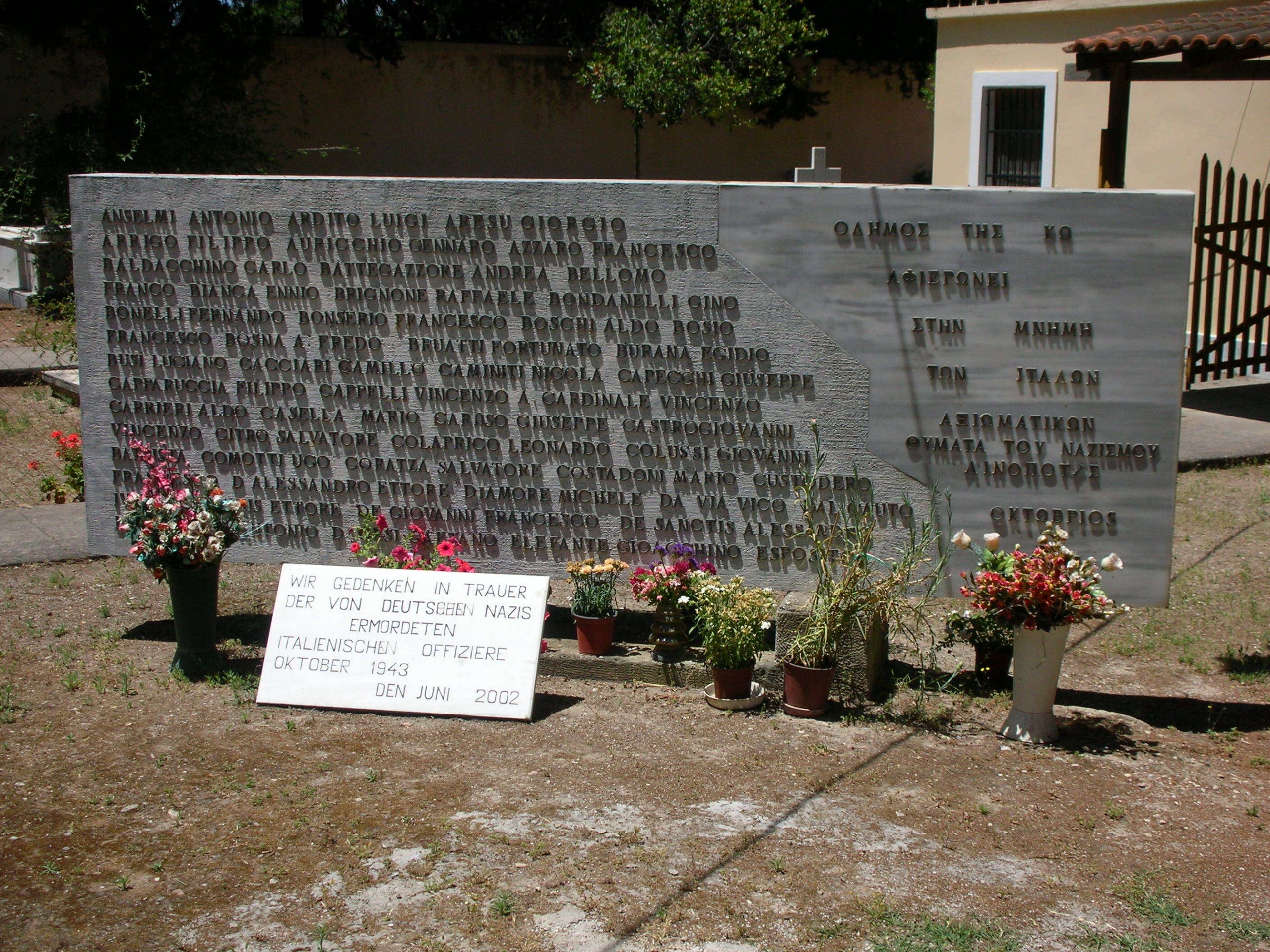 Zwischen dem 5. und 7. Oktober 1943 wurden mehrere Dutzend italienische Offiziere der Wehrmacht heimlich in die Nähe des Dorfes Linopotis gebracht und dort erschossen. Ihre Leichen wurden in Massengräbern verscharrt. 1945 wurden die sterblichen Überreste exhumiert und auf dem katholischen Friedhof von Kos beigesetzt. 1954 erfolgte die Überführung nach Italien, wo sie auf dem Soldatenfriedhof in Bari ihre letzte Ruhe fanden.