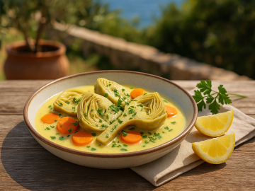 Zarte Artischocken in samtiger Zitronen-Ei-Creme