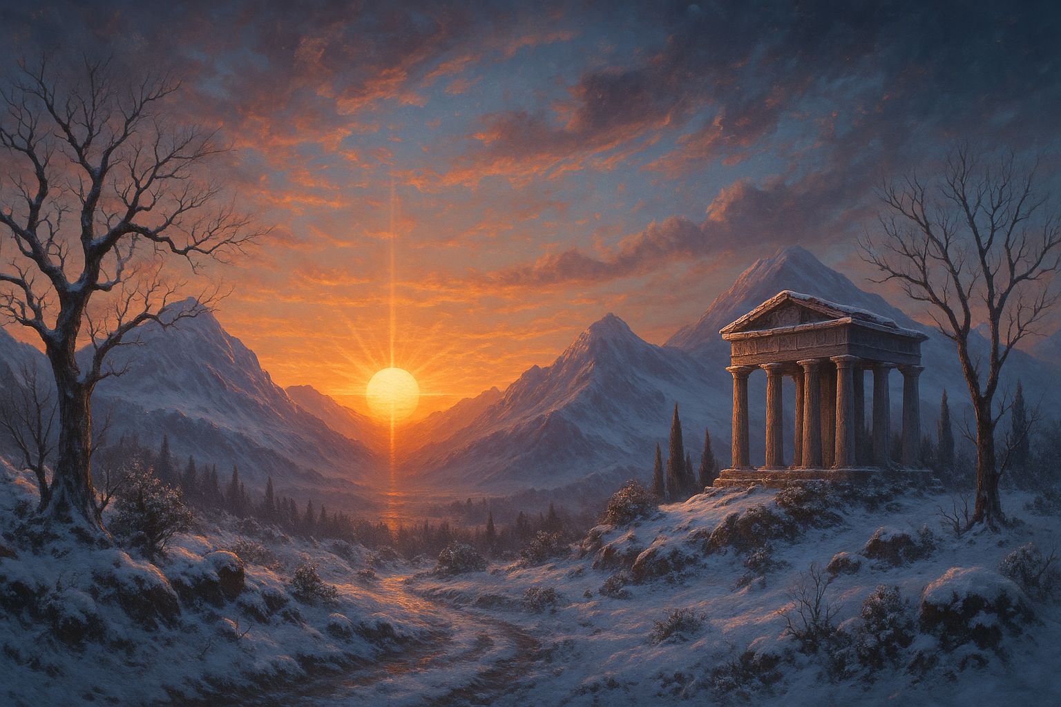Aktuell – Sonntag, 21. Dezember 2025, um 17:02 Uhr (Osteuropäische Zeit) … Wenn der Tag seinen kürzesten Schatten wirft und die Nacht ihren tiefsten Mantel ausbreitet, hält die Welt den Atem an: Die Wintersonnenwende, ein uraltes Naturereignis, das seit Jahrtausenden Menschen zu mystischen Deutungen und rituellen Handlungen inspiriert. Auch im antiken Griechenland wurde dieses kosmische Schauspiel nicht nur beobachtet – es war tief verwoben mit Mythen, Göttergeschichten und der ewigen Hoffnung auf Wiedergeburt und Licht.