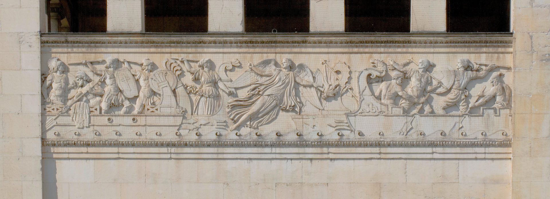 Die Namen von 32 Freiheitskämpfern sind bis heute auf den Innenwänden der Säulenhalle verewigt – griechische und europäische Unterstützer der Revolution, deren Einsatz nicht vergessen werden soll. Die Reliefs und Skulpturen, geschaffen von Ludwig von Schwanthaler, zeigen Szenen aus dem Kampf gegen die osmanische Fremdherrschaft: den Schwur der Aufständischen, den Seekrieg, die Huldigung König Ottos. Historische Realität und allegorische Darstellung verschmelzen hier in steinerner Erzählkunst.